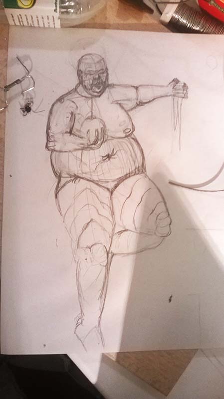 Tout bon projet commence par des croquis. Je n’étais pas fixé sur ce que je voulais représenter au départ. Eden est un jeu post-apo, ce qui laisse un bon nombre de possibilités ! Tout y est passé : Site nucléaire, avec un grosse tour de refroidissement, parking de centre commercial, immeuble abandonné et en ruine (avec des graffitis !), un jardin public avec des jeux pour enfant… ou un centre ferroviaire. Le centre commercial me tentais bien, mais j’avais pas envie de préparer des poteaux lumineux nombreux, des panneaux pubs, abris caddies… Le site nucléaire, j’aurai adoré, mais j’ai su raison garder : le refroidisseur, même partiel, aurait pris beaucoup trop de place et sur le terrain de jeu, et en terme de stockage.
