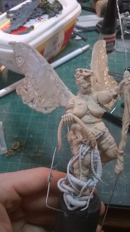 Et deux photos avec une figurine pour l’échelle, il s’agit de Lilith de la faction des Anges de Dante, sculptée par le talentueux Graphigaut (un régal à peindre !)